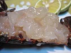 地元で水揚げされた新鮮な魚介類(伊勢海老・サザエ・あわび・車えび・ウチワエビ・ぞうりエビ・・・)を活きたまま豪快に焼いて食べる残酷焼き。 まさに贅沢・至極! 阿波の国(徳島県) 宍喰(ししくい)産!天然・伊勢えびの 美味しさを伝えたい! ![]() ![]() ![]() 四国沖を流れる黒潮で育まれた宍喰(ししくい)産!天然・活伊勢海老はピチピチと飛び跳ねてムッチャ元気! 容姿端麗、ぷりっとした身の締まり、歯ごたえ・とろける甘さは極上級。 ![]() 【350グラムサイズの天然活・伊勢海老】 阿波の国(徳島県)を代表する“伊勢海老の目利き・達人”から直送! ![]() 伊勢海老の全てを知り尽くした海の男! ピチピチと元気のよい伊勢海老を、自信を持ってお届けします。 小サイズ〜超・特大サイズまでを取り扱い、まとまった数量にも対応できます。 【伊勢海老目利き・達人 谷岡保俊氏】 宍喰(ししくい)の天然活・伊勢エビ! 10月下旬から販売開始(期間限定) 徳島県(阿波の国)は9月15日から伊勢海老漁の解禁です! ■販売期間限定 (10月26日〜翌年1月30日予定) ![]() ![]() ![]() 産地直送でお取り寄せ! 喜ばれています。 阿波の国・宍喰(ししくい)の極上もの 『伊勢海老』の長いヒゲは長寿を連想し、お正月やお祝い事には欠かせません。 お歳暮にも多く利用されています。ご予約はお早めに! 大型サイズから水揚げが少なくなり品切れとなる場合があります。 ご了承下さい。 ※お正月休み12月31日〜1月3日 ※注文受付12月20日まで 最終出荷12月27日 年始初出荷1月4日頃 ※商品のご注文は余裕をもってお願いします。 ※伊勢海老の重量は若干の誤差がありますのでご了承下さい。 お歳暮にも大人気! 産地直送! 活きのよさが売りです! 宍喰(ししくい)産 天然・伊勢海老の最大の特徴は・・・・ 身痩(や)せしていない! ※安い!と思って買った伊勢海老が身痩せしてガッカリ! ・・・なんてことありますよね。 宍喰(ししくい)産の天然・伊勢海老は身が弾けんばかりにピチピチで〜す! ![]() ![]() 【とろける美味しさ お刺身】 【ぷりっぷりの身 蒸し焼き】 ★地域ブランド★ 【宍喰産 天然 活・伊勢海老セット】 〜サイズ毎に2〜3尾のセットになっています〜